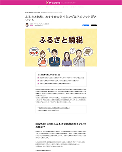 弊社取締役 高山一恵の記事「【ふるさと納税】シミュレーションに要注意!医療費やiDeCoを計算し忘れ上限額超えが多発」が掲載されました。(高山一恵)
