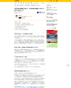 弊社代表 頼藤太希の記事「2025年の投資に向けて、年末年始に確認しておくべき5つのポイント」が掲載されました。(頼藤太希)